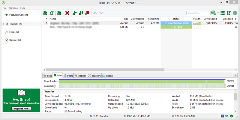 - Micro Transport Protocol (µTP) preliminary support as of 1.8.2 with full-support added in 2.0